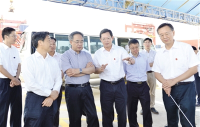 圖為胡春華實地了解湛江市港口規劃及湛江港建設運營情況 圖片來源:湛江日報
