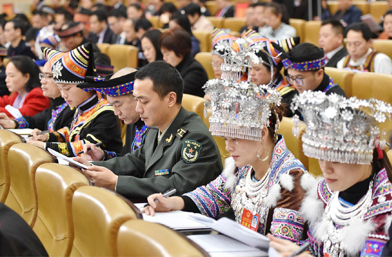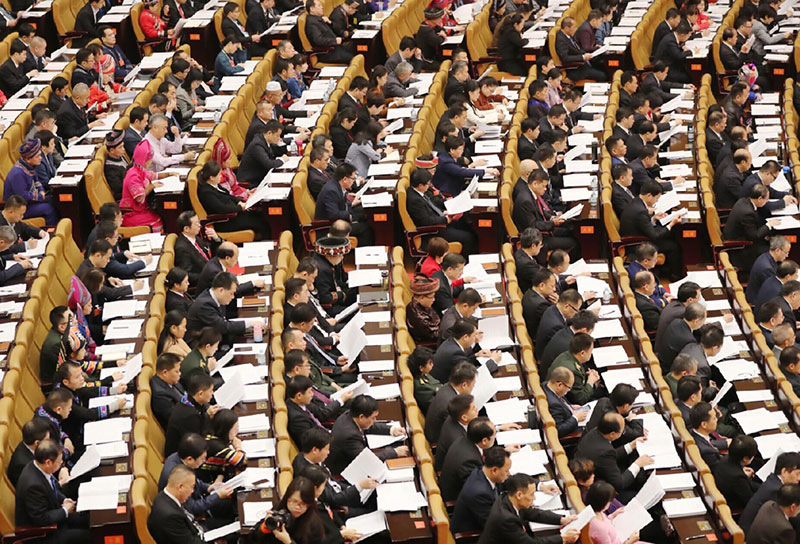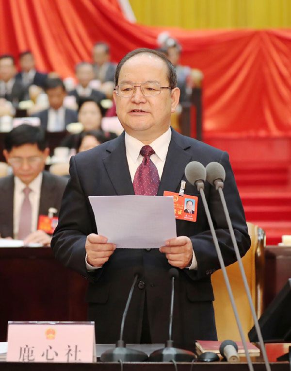 會(huì)議由大會(huì)主席團(tuán)常務(wù)主席、執(zhí)行主席鹿心社主持。黃克/攝