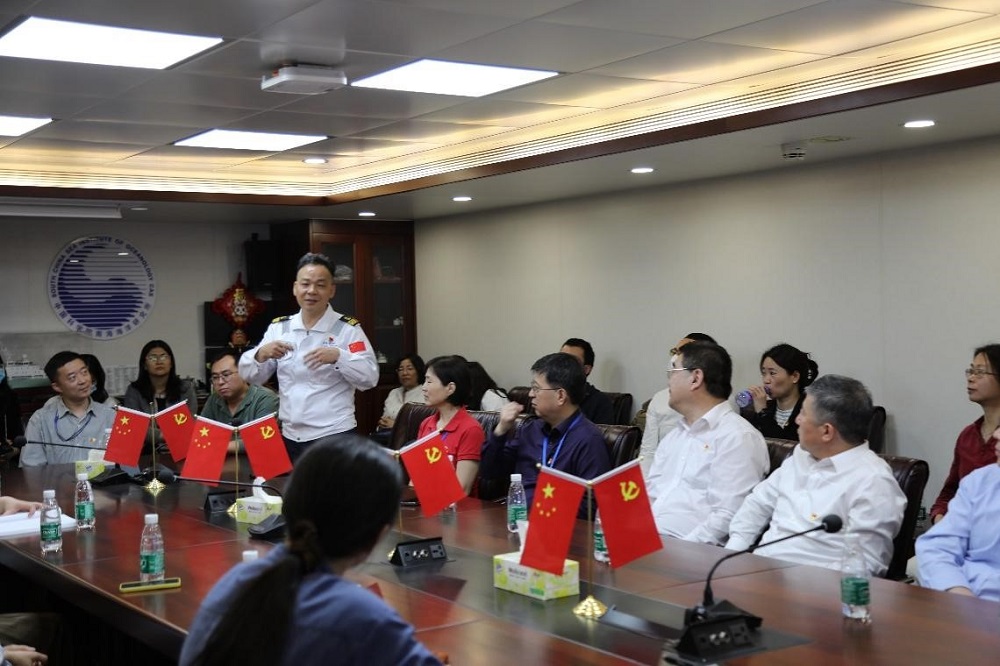參觀結束后,大家在科考船會議室觀看了“實驗6”科考船宣傳視頻。徐海作《講政治 重實效 全面提高黨建工作質量》的報告,報告對華南植物園的發展歷程、華南國家植物園的推進及建設情況,以及黨組織發展歷程、組織設置和貫徹落實中央、院黨組和省委決策部署等方面的工作進行了介紹。最后,徐海回顧了2022年農生中心第一黨支部與中科院南海海洋研究所熱帶海洋環境國家重點實驗室黨支部在華南植物園開展的科普專題交流會的情況,希望華南植物園和南海所能夠開展更多、更深、更實的交流與合作。雙方就下一步發揮各自優勢,促進業務工作提升與合作進行了深入的交流和討論。代亮對華南植物園在南海生態島建設方面作出的積極貢獻表示肯定和感謝,強調將來要進行深入的交流合作,充分發揮雙方優勢,緊密結合國家重大需求,為建設海洋強國貢獻科技力量。