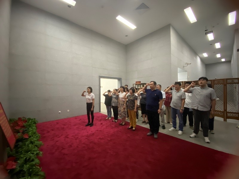 參觀結束后,在第一黨支部書記張璐璐同志的帶領下,全體黨員重溫了入黨誓詞,在鮮紅的黨旗下再一次經受心靈的洗禮,以此激勵自身“不忘初心,牢記使命”。