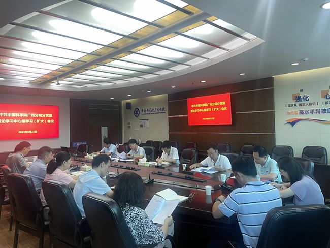 8月22日,中國科學院廣州分院分黨組理論學習中心組召開2023年第3次學習(擴大)會。廣州分院分黨組書記、院長、理論學習中心組組長陳廣浩主持會議。廣州分院分黨組成員、機關各部門副處以上干部參加學習會。