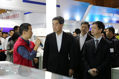 11月18日下午,全國政協副主席、香港特別行政區前行政長官梁振英出席第十九屆中國國際高新技術成果交易會(簡稱“高交會”)期間,來到中國科學院深圳先進技術研究院展區參觀。深圳市政協主席戴北方等陪同參觀,先進院黨委書記楊建華,院長助理、產業合作與發展處處長畢亞雷迎接來賓一行。