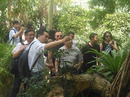 座談會后,蔣躍明向夏俊松贈送了植物園建設與管理的有關專著。隨后代表團參觀了植物專類園區和溫室群景區,重點考察了溫室景區的設計布局、景觀特色、基礎設施和營運成效等,并就植物收集、景區建設與營運管理等作了進一步交流。