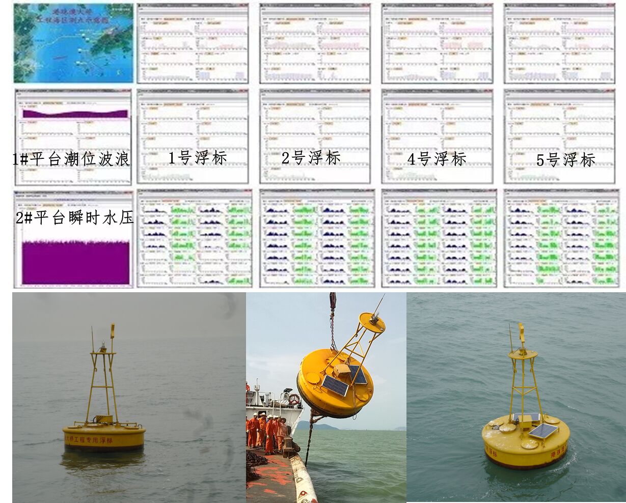 港珠澳大橋全長約55公里,橫跨珠江口外的伶仃洋海域,將香港、澳門和珠海三地連為一體,是繼三峽工程、青藏鐵路之后,我國又一重大基礎設施項目,被世界譽為“超級工程”的跨海大橋。由于工程所處海域環境條件復雜,施工難度大且要求非常精準,對作業區的海洋環境預報保障提出了很高的要求。為了滿足大橋島遂工程施工作業海洋環境預報保障的需要,提供海洋數值預報模式研制和預報結果驗證所必需的高密度實時數據,中國科學院南海海洋研究所王盛安研究員課題組受委托建設了港珠澳大橋島隧工程現場流浪潮實時監測系統,系統包括多套海流剖面和波浪監測浮標、平臺波浪和潮位監測單元。海流剖面和波浪監測浮標5分鐘自動測量1組海流剖面數據、每30分鐘自動測量1組波浪數據。平臺波浪和潮位監測單元以2Hz的頻率連續采集水壓,每分鐘向用戶發送1組瞬時水壓記錄(120個樣本,用于監測異常波浪)、每分鐘輸出1個潮位數據、每30分鐘輸出1組波浪統計數據。