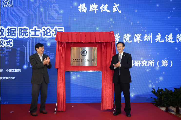 中國工程院院士干勇(左)、深圳先進院院長樊建平(右)為中科院深圳先進院先進電子材料研究所(籌)成立揭牌