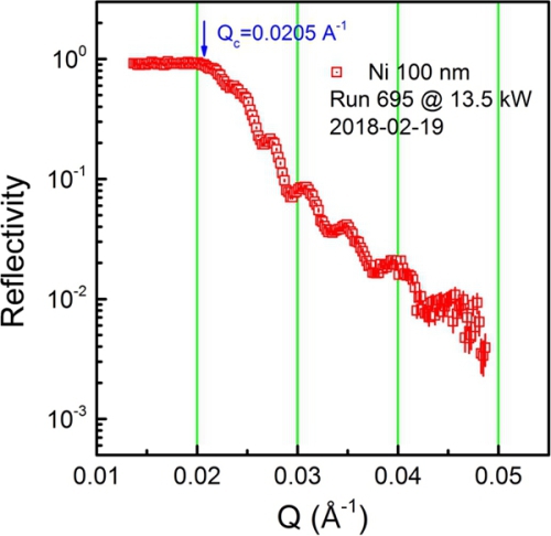 100納米Ni薄膜的中子反射曲線