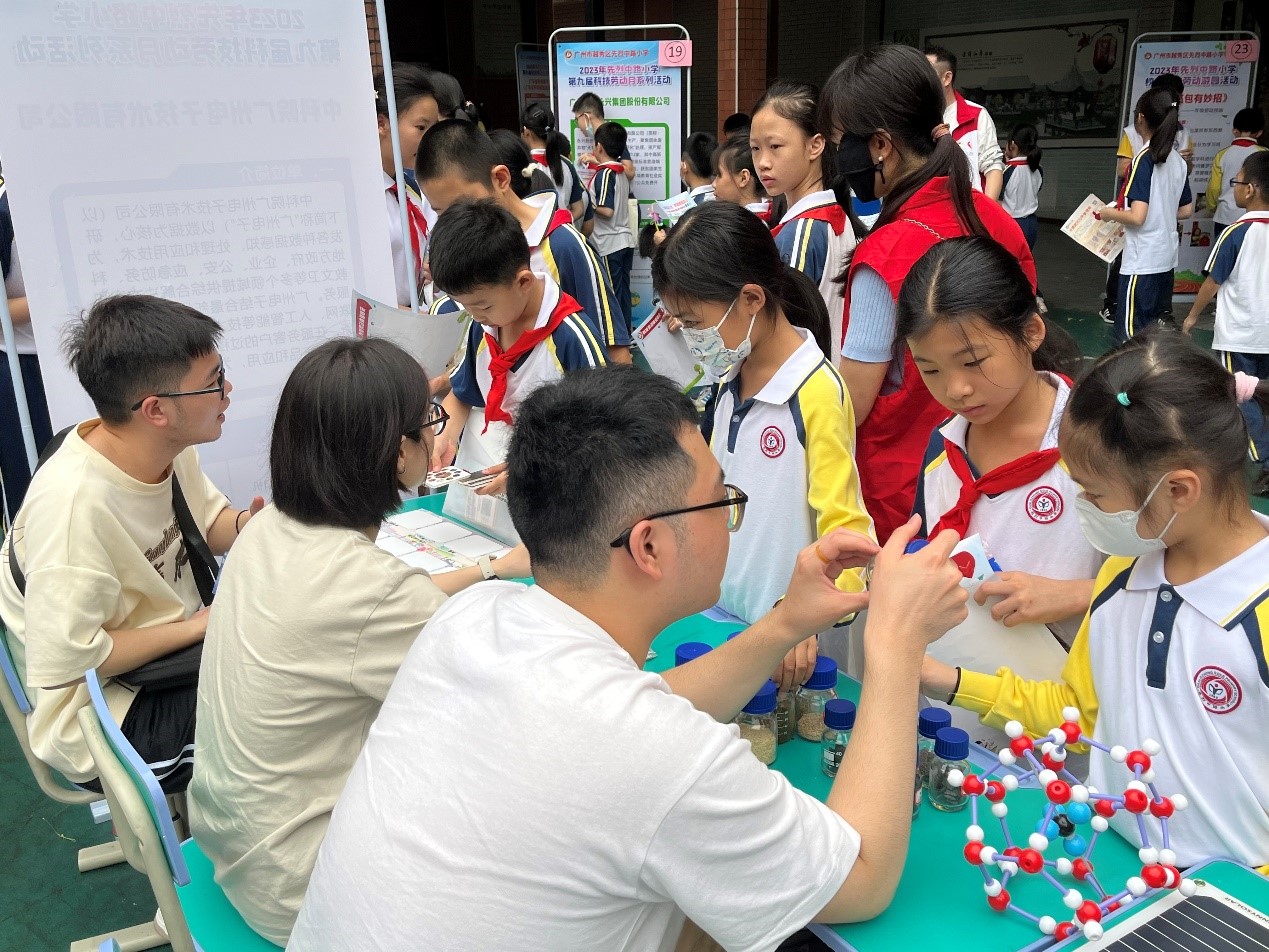 4月21日,中國科學院廣州能源研究所新能源流動展館走進廣州市先烈中路小學。趙小雙、郭應輝、吳鋒明和張聰等擔任科普講解員,分別介紹了常見的新能源知識點、生物質能領域常見的生物質原材料和常用催化劑、天然氣水合物模型和可燃冰、各類太陽能板的工作原理。