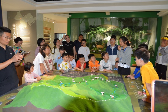 大家首先參觀了自然教育展覽室,在工作人員的講解下認識了鼎湖山的黃花大苞姜、版納魚螈、白鷴等“明星”物種,了解了保護區的歷史和現狀,從科學的角度“看見”不一樣的鼎湖山。