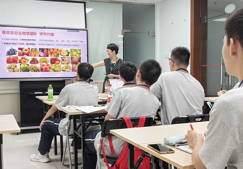 “荔枝采后品質劣變成因及保鮮”小課題由朱虹研究員指導。同學們學習了荔枝的起源和栽培史、種質資源、營養成分、采后品質劣變的成因,以及荔枝保鮮的基本理論及方法。同學們針對不同的荔枝品種,完成了荔枝果皮結構觀察和果實可溶性固形物測定的科學實驗,還自己設計實驗,掌握了果皮褐變的三大要素及pH值對果皮褐變的控制。