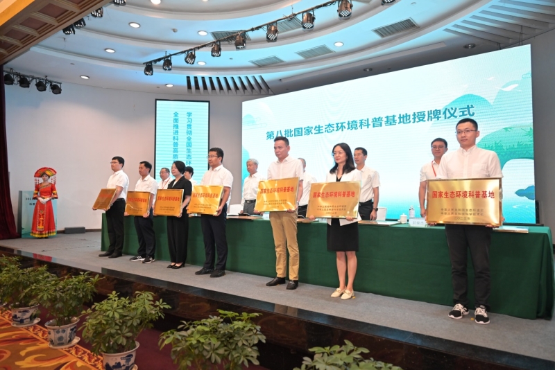 8月15日是我國首個全國生態日,生態環境部在廣西桂林舉辦全國生態環境科普工作交流會。生態環境部科技與財務司鄒首民司長、廣西壯族自治區生態環境廳寧耘副廳長、桂林市人民政府龍杏華副市長、桂林理工大學王玫副校長等相關領導出席會議并作了致辭和講話。開幕式上,頒發了第七批和第八批國家生態環境科普基地牌匾,中國科學院廣州地球化學研究所獲評第八批國家生態環境科普基地。