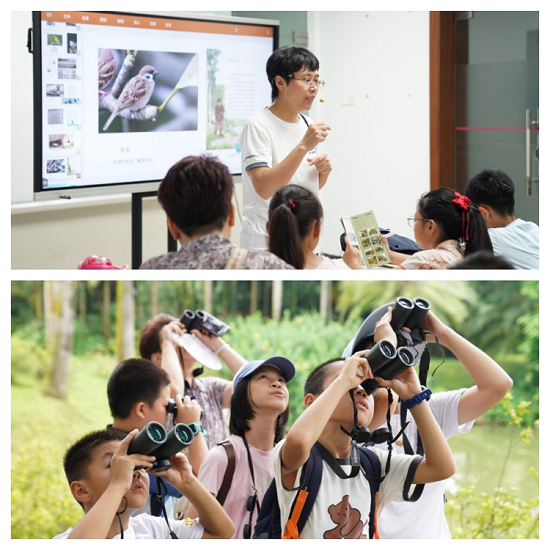 ????8月15日上午,在《林間精靈》觀鳥科普課程中,小朋友們手持望遠(yuǎn)鏡,沉浸于華南國(guó)家植物園鳥語花香中,尋找并識(shí)別那些曾在語文課本中躍然紙上的鳥類。在實(shí)地觀察的過程中,專業(yè)導(dǎo)師引導(dǎo)孩子們深入了解鳥類的生活習(xí)性、棲息地環(huán)境以及它們?cè)谏鷳B(tài)系統(tǒng)中的重要地位,加深了孩子們對(duì)鳥類知識(shí)的了解,激發(fā)了他們對(duì)生態(tài)環(huán)境的熱愛。