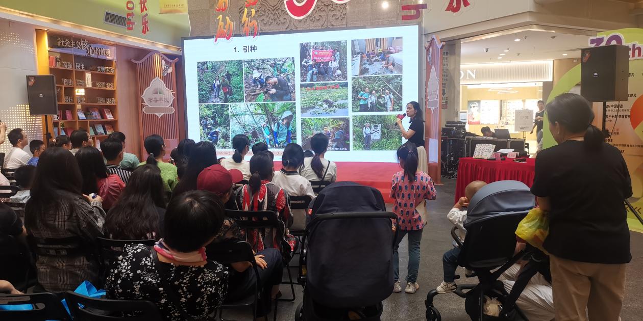 華南國家植物園引種保育部副部長湛青青以“植物的保護和利用植物”為題,將植物園開展的保育引種工作娓娓道來,向讀者們展示了許多驚險而又富有趣味的野外引種工作花絮,引得現(xiàn)場讀者和觀眾驚嘆不已。同時,湛老師還介紹了本書相關(guān)植物在植物園的分布情況,期待各位讀者親近大自然,走進植物園,親身感受植物的美好。
