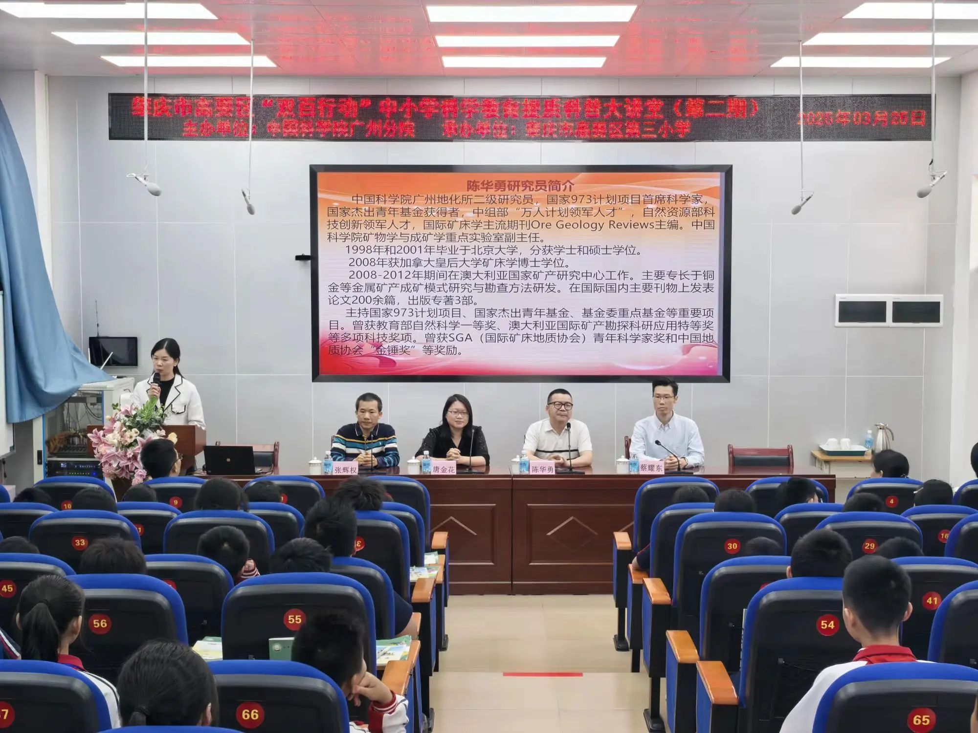 3月25日,廣東省肇慶市高要區"雙百活動"中小學科學教育提質科普大講堂(第二期)在高要區第三小學隆重舉行。中國科學院廣州地球化學研究所陳華勇研究員受邀走進廣東省肇慶市高要區第三小學,以“地球,我們的家園”為主題,為同學們帶來了一場生動有趣的科普講座,帶領大家開啟了一場探索地球奧秘的奇妙旅程。