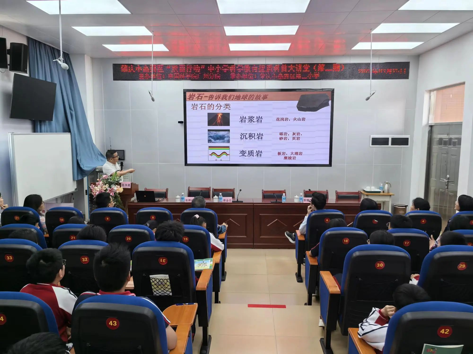 在“巖石——告訴我們地球的故事”,將孩子們帶入了一個神秘的巖石世界。陳華勇研究員展示各種奇特的巖石標本,講解它們的形成過程。孩子們了解到巖石就像地球的“日記本”,每一層紋理、每一種顏色都記錄著地球漫長歲月中的地質變遷,火山噴發、地殼運動等遠古事件仿佛在眼前重現。在“礦物——組成地球的細胞”這一主題中,他把復雜的地質學知識轉化為有趣的比喻,將礦物晶體比作地球的“細胞”。通過精美的圖片和實物展示,孩子們認識到這些微小卻神奇的晶體如何構成了我們腳下堅實的大地,明白了礦物在工業、生活中的重要作用,對地球內部結構有了更深入的理解。在“巖石礦物——大自然的禮物”這一主題中,陳華勇研究員著重介紹了巖石和礦物對人類的饋贈。從珍貴的寶石到日常使用的金屬,從建筑材料到能源資源,孩子們驚訝地發現,我們的生活處處離不開這些大自然的寶藏。同時,他也呼吁大家熱愛科學,熱愛大自然,合理利用資源,保護自然環境,讓這份珍貴的禮物能夠世代傳承。