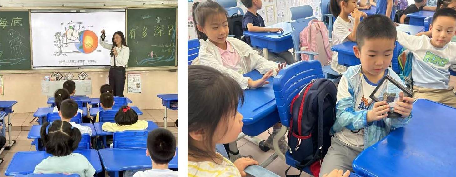 課堂伊始,楊陽通過展示冰島、夏威夷以及海底火山噴發的震撼畫面,點燃了孩子們的好奇心。她用生動的語言詳細講解了海底火山的形成過程和噴發機制,讓孩子們仿佛置身于深海之中,親眼目睹火山噴發的壯觀景象。隨后,她結合全球各大洋的海底火山樣品,深入淺出地介紹了海底火山巖樣品的采集方法,以及海洋科學家在出海工作和生活中的日常。楊陽還系統介紹了我國在深海探測領域的輝煌成就,從“蛟龍”號、“奮斗者”號等載人潛水器的深海壯舉,到“悟空號”、“潛龍一號”等無人潛器的智能探索,充分展示了我國在深海探測領域的技術實力。她還特別強調了2024年剛建成的“夢想號”大洋鉆探船,這艘凝聚著中國海洋科學家夢想的科考巨輪,將為我國深海科學研究提供前所未有的機遇。通過講座,孩子們對我國在深海探索領域的成就有了深入的了解,不僅感受到科技的力量,更激發了孩子們的科學熱情和夢想。