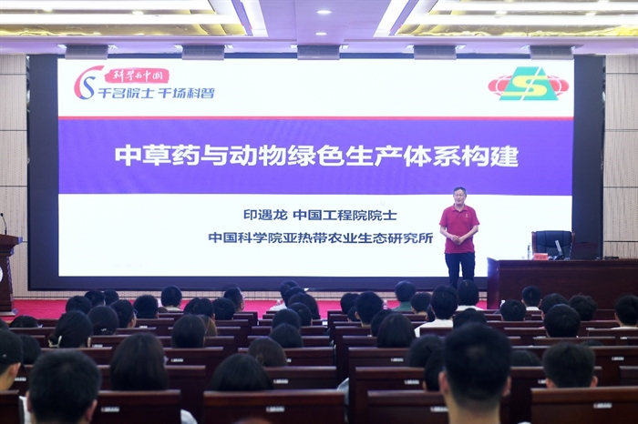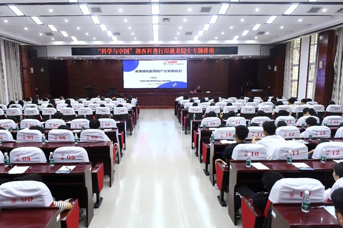 中國工程院院士、亞熱帶生態(tài)所印遇龍研究員在湘西民族職業(yè)技術學院和吉首大學分別作題為《食用豬和醫(yī)用豬產業(yè)發(fā)展規(guī)劃》《中草藥與動物綠色生產體系構建》的科普報告,分享食用豬和醫(yī)用豬產業(yè)發(fā)展現狀、市場前景、發(fā)展瓶頸及有效解決路徑,中草藥在養(yǎng)殖中應用的歷史,天然植物飼料在健康養(yǎng)殖中的應用,我國中草藥資源發(fā)展問題及解決辦法,中草藥在養(yǎng)殖業(yè)應用的前景展望等內容。