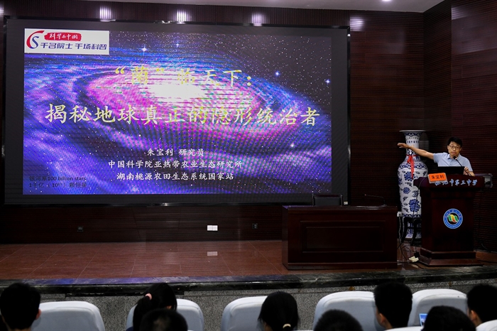 朱寶利研究員在懷化市第三中學作題為《“菌”臨天下:揭秘地球真正的隱形統(tǒng)治者》的科普報告。他在報告中介紹,在與人類文明的交匯中,微生物扮演著雙重角色,它們既是腸道健康的隱形指揮官,又是生物技術革命的靈感源泉,也曾以黑死病等瘟疫事件深刻改寫人類歷史。未來,從微生物燃料電池到利用藍藻進行太空生態(tài)系統(tǒng)構建,這些“微觀工程師”有望引領能源革命與星際生存。