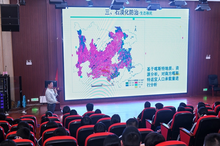 在懷化市金時中學,袁紅朝正高級工程師作題為《雙刃劍:小小元素的大能量》的科普報告,元素作為物質的基本單位,其微觀能量既可推動文明,也可能引發(fā)危機作為,報告還回顧一批杰出科學家以愛國奉獻、自主創(chuàng)新精神,助力中國核能事業(yè)崛起的故事;張浩研究員作題為《石漠化:土地的“石化”之謎與綠色復蘇計劃》的報告,介紹了我國南方石漠化分布情況及危害,剖析自然與社會成因,并從生態(tài)移民、植被復合經營、生態(tài)產業(yè)等方面展示石漠化治理成效。