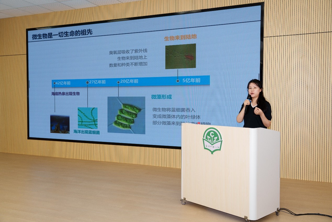 李穎首先以貼近生活的問題切入講座:“為什么面包放久了會發(fā)霉?為什么冰箱能延長食物保質(zhì)期?森林里的落葉最終去了哪里?”一個個有趣的提問瞬間點燃了學(xué)生們的好奇心。通過生動形象的講解和引導(dǎo),學(xué)生們發(fā)現(xiàn)微生物在日常生活中的無處不在,感受到這些微小生命的強(qiáng)大力量。隨后報告循序漸進(jìn)地介紹了微生物菌群的鑒定方法、分離篩選流程及其廣泛用途,進(jìn)而引出生物甲烷、生物柴油、生物乙醇等生物質(zhì)能的技術(shù)路徑。報告通俗易懂,深入淺出,帶領(lǐng)學(xué)生們領(lǐng)略微生物在能源領(lǐng)域創(chuàng)造的奇跡。