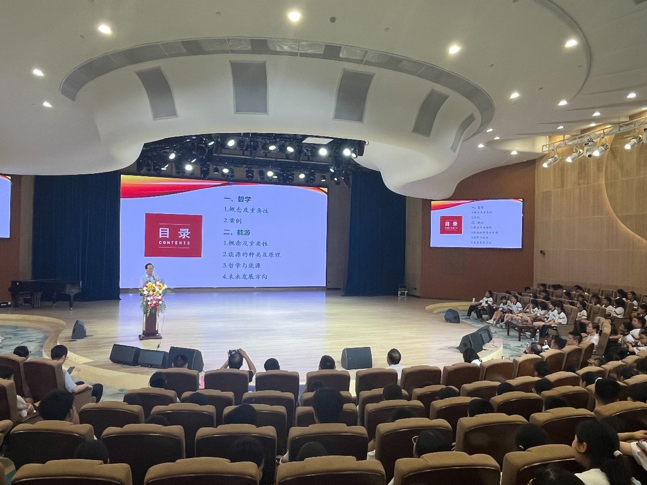 ????7月3日,由中國科學院廣州分院等主辦的“中國科學院科普進校園灣區百校行、2025年廣州院士專家校園行”暨廣州外國語學校第91期博雅講壇舉行。中國工程院院士、廣東省科協主席陳勇以《哲學與能源》為題,為該校師生帶來一場貫通人文與科學的跨界講座。
