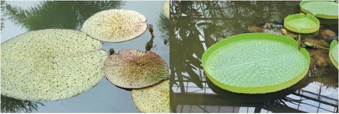 圖3 芡實(左)與王蓮屬(右)的葉片(徐一大攝) ????