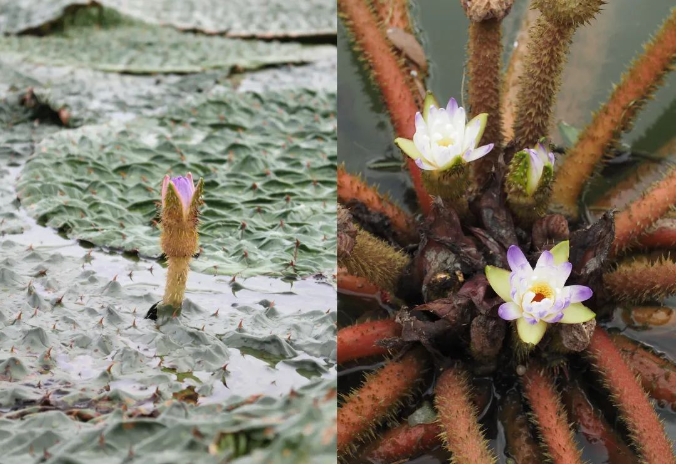 圖5 破葉而出的芡實花與其開放時的狀態(徐一大 攝) ????