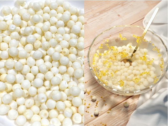 圖11 剝去種皮的芡實子與桂花芡實湯(徐一大 攝) ????