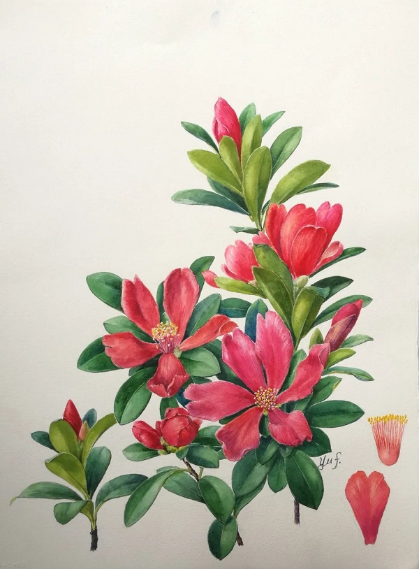 ???? ????杜鵑紅山茶科學畫,余峰繪 ??