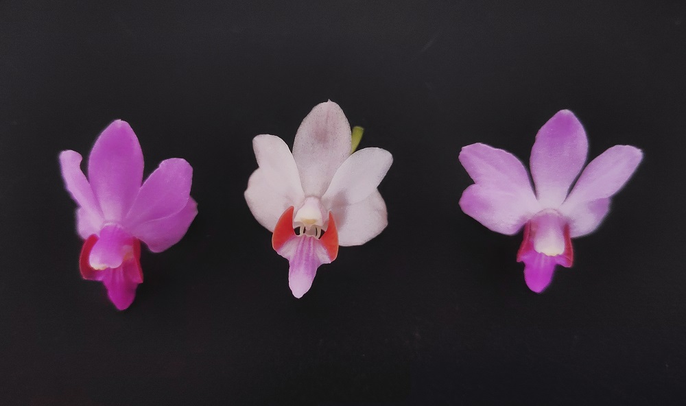 ????五唇蘭的花色變化是因為色素種類和含量存在差異,主要歸因于花青素和黃酮醇苷的含量變化,在基因層面可能MYB轉錄因子調控的結果。華南植物園蘭花研究組正在對這一奇妙現象進行深入的研究。