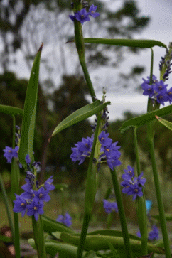 高亭雨久花特征明顯,葉片基生,略微傾斜伸出水面,宛如斜插于水中的戰戟;花亭高高直立于水面,數十朵藍紫色小花總狀聚生于花序上,如一群小鳥欲展翅飛翔。高亭雨久花盛放于秋風起后的涼爽季節,花期約15-20天。高亭雨久花植株高可達1.7米,堪稱雨久花科植物里面的“巨人”。