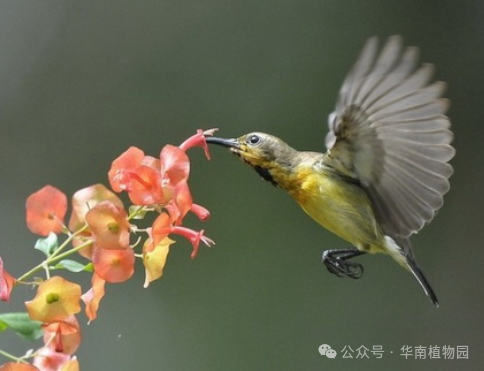 ▲暗綠繡眼鳥空中懸停取食花蜜