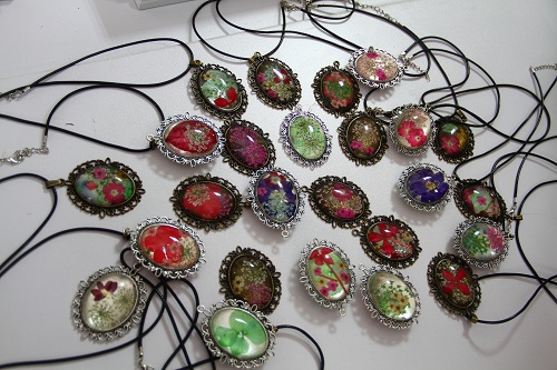 學員認真創作。學員們進行壓花飾品“時光寶石”項鏈的制作,用花為材自由設計圖案,制作出一顆顆獨一無二的“時光寶石”。