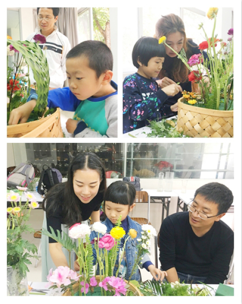 戶內(nèi)插花課側(cè)重于動(dòng)手實(shí)踐和創(chuàng)意。首先由專業(yè)花藝?yán)蠋煘榇蠹抑v授插花的方法步驟、色彩應(yīng)用等要點(diǎn)。老師不僅教授大家插花的技巧,同時(shí)如何把戶外撿到的樹(shù)皮作為配花,合適地?cái)[放在插花作品里。隨后,小朋友們?cè)诶蠋煹闹笇?dǎo)下靈活運(yùn)用剛學(xué)到的知識(shí),充分發(fā)揮自己的想象,通過(guò)選花材、埋花泥、減枝干,最終,一朵朵優(yōu)美典雅、風(fēng)格迥異的創(chuàng)意花藝作品呈現(xiàn)在大家眼前。