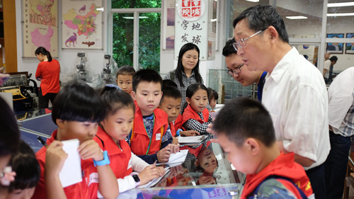 老科學(xué)家志愿者帶領(lǐng)小記者們走進(jìn)標(biāo)本陳列館,向他們介紹了我國(guó)大江南北各種石頭和古生物化石的前世今生,以及石頭在工農(nóng)業(yè)發(fā)展和醫(yī)藥應(yīng)用方面的重要作用等科普知識(shí)。小記者們就石頭和古生物化石知識(shí)進(jìn)行了現(xiàn)場(chǎng)采訪,并與科普志愿者熱情互動(dòng)。