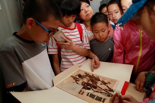 隨后,在華南植物園曾老師的帶領下,同學們興高采烈地走進了標本館。從曾老師的解說當中,了解到標本館內收藏的100多萬份標本凝聚了數代植物學家的汗水和心血。曾經華南植物園第一任園長陳煥鏞院士在抗日期間為了保護植物標本,舍棄家中財產冒著個人生命危險,將標本從廣州轉移到香港保存;植物采集家鄧世緯在野外采集標本,不幸染病為科學事業獻出了寶貴的生命,科學家們的感人事跡令同學們感動不已。在標本館內,同學們見識了從1849年穿越170年而來的遠志標本、植物活化石“銀杉”的模式標本等,在老師的指導下讀懂了一份標本所蘊含和承載的科學信息。