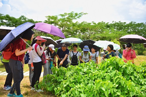 隨后,學員走出課堂,運用所學知識,辨認生物園、藤本園、蘭園、藥園等當季開花的植物。走在林間小路上,耳邊縈繞蟲鳴鳥叫,微風吹散了身體的疲憊。在徐老師的指引下,學員順利找到了木本馬兜玲、黑老虎花、亞洲石梓等植物的花朵,通過觀察、記錄、交流,加深了對植物的認識。