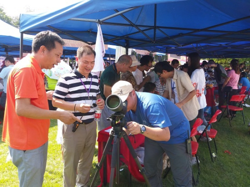 華南植物園園藝中心副主任廖景平(左一)為市民講解科普觀察