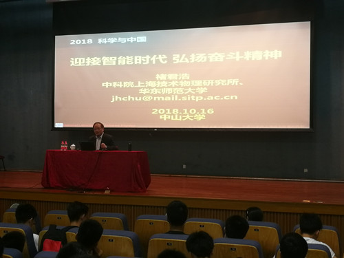 10月16日下午,中國科學院院士褚君浩在中山大學為在校師生作了題為“迎接智能時代 弘揚奮斗精神”的專題報告。褚君浩院士在報告中簡要回顧了人類歷史上幾次工業革命的情況,討論了以智能化為主要特征的第四次工業革命的驅動力、特征和態勢等問題。同時,他也結合自身在學習、工作、生活中的感悟,引用古今中外的優秀事跡,勉勵青年學子在新時代要培育飛翔潛能、弘揚奮斗精神,為建設中國夢而努力奮斗。報告結束后,場內師生踴躍提問,積極向院士請教有關問題,報告氛圍濃厚,師生反應強烈。