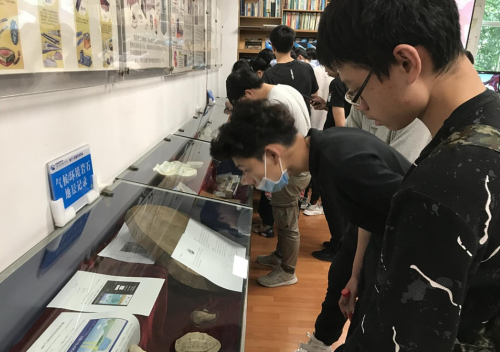 在老科學家和研究生志愿者的引導下,同學們開始了“基礎地質課程之旅”。展柜里900余種形態各異的巖石礦物和古生物標本,引得大家不時駐足學習。兩位講解員分組對照館內各種模型,為同學們講解了丹霞地貌、喀斯特地貌、火山和地震等自然景觀的形成原理和過程,同時結合同學們所學專業,對有關代表性的巖石和礦物的結構、構造以及在工程地質中的應用等地學知識進行了詳細講解。在礦物展區,同學們了解了瑪瑙、玉石、石筍的結構組成及其形成原理,以及人造水晶和天然水晶的區別特征;在古生物展區,面對各種蟲、鳥、魚化石、恐龍蛋化石等古生物標本,同學們產生了濃厚的興趣,不斷向講解員提出疑惑和見解,如三葉蟲如何辨別雌雄、恐龍蛋如何保存等問題。