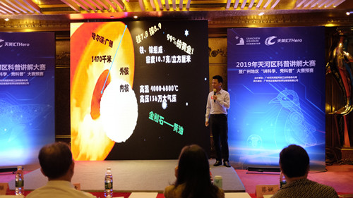 3月20日,由廣州市天河區科技工業和信息化局主辦的2019年廣州市天河區“講科學、秀科普”大賽暨2019年全國科普講解大賽預賽在廣州市正佳極地海洋世界舉行。來自廣州市天河區68位不同職業、不同年齡、不同風格的選手同臺競技,講解內容涉及地球科學、食品安全、生物、醫學、新能源、環境保護、金融、大數據等多學科領域。選手們各具特色的精彩演講,既生動又富有感染力,為觀眾提供了一場通俗易懂、引人入勝的科普盛宴。