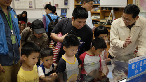 4月14日,在中國科學院廣州地球化學研究所地學與資源科普基地現場,來自廣州市天河轄區內的棠下小學、華景小學、體育東路小學等學校的20多名老師、小朋友和家長參加了“感受地學之美”科學課堂學習。