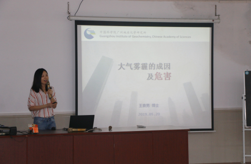 5月20日,廣州市增城區香江學校舉辦第二屆科技文化節,中國科學院廣州地球化學研究所有機地球化學國家重點實驗室博士后王賽男為該校100多名小學生作了一場題為“大氣霧霾的成因及危害”的科普報告。