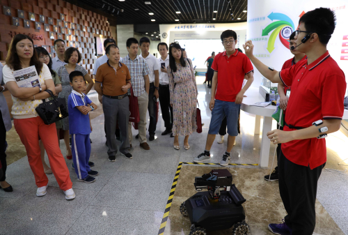 重點實驗室的開放和最新科技成果的展示是開放日的另一大亮點,在精密工程、醫學影像、3D打印骨材料等8個實驗室內,一線科研人員為參觀者親自講解爬壁除銹機器人、磁共振成像系統、3D打印生物材料、虹膜識別等技術的應用。神經調控小車、人臉識別小盒、氣象大數據等科技成果的展示也吸引了眾多參觀者的目光。