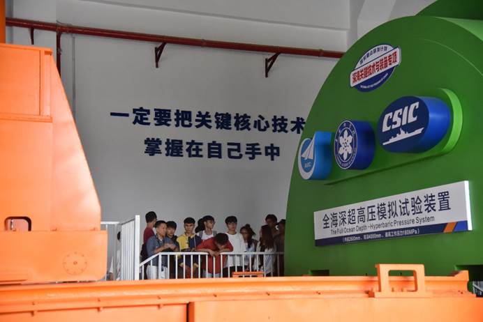 首先,活動(dòng)邀請(qǐng)到來(lái)自深海工程技術(shù)部的陳俊副研究員以《海洋裝備及其科考應(yīng)用》為題,向同學(xué)們介紹了海洋裝備的類別和國(guó)內(nèi)外研究現(xiàn)狀,并介紹了深淵著陸器的基本原理、研究進(jìn)展和應(yīng)用情況;隨后,在工作人員的帶領(lǐng)下,同學(xué)們參觀了工程實(shí)驗(yàn)室和深海超高壓模擬試驗(yàn)裝置,零距離接觸深淵著陸器、深海機(jī)器人等深海裝備,了解超高壓模擬試驗(yàn)裝置的工作原理;通過(guò)觀看“深海勇士”號(hào)載人潛水器研制與海試紀(jì)錄片,了解深海裝備的研發(fā)與應(yīng)用過(guò)程;最后,來(lái)訪人員體驗(yàn)了深海虛擬現(xiàn)實(shí),“親身感受”深海作業(yè)場(chǎng)景和海底奇觀。活動(dòng)使同學(xué)們大開(kāi)眼界,激發(fā)了大家對(duì)深海工程技術(shù)和深淵探索的極大興趣。