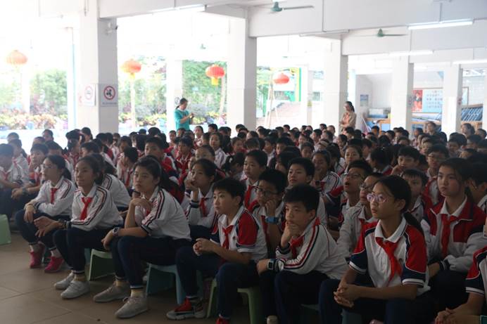 在全體師生的熱烈歡迎下,亓偉做了主題為“低碳新能源”的講座。他針對小學生的特點,理論聯系生活,深入淺出地為同學們講解生物質能、太陽能、海洋能等新能源的特點及重要性。在之后的垃圾分類互動答題環節中,同學們熱情高漲,積極回答問題,活動現場氣氛熱烈。講座結束后,亓偉與同學們進行了交流和答疑。最后同學們觀看了可燃冰系列視頻,科普志愿者以提問的方式與同學們進行了互動,加深了同學們對可燃冰知識的了解。
