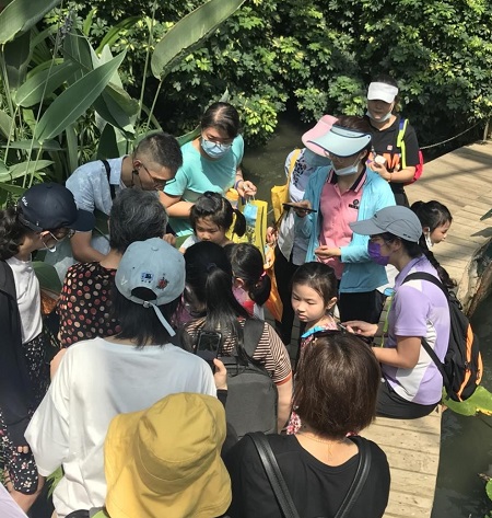 “水精靈”水生植物是生態系統中的一個重要類型,是被譽為"地球之腎"的濕地中的基礎物種。在這芳菲漸遠的初夏,華植的水生植物卻生機勃勃,滿眼姹紫嫣紅:顏色豐富的各種睡蓮,伴著淺紫的梭魚草、深紫的水竹芋、粉紅粉黃的美人蕉、明黃的黃花貍藻、正黃的萍蓬草、純白的澤瀉慈菇等,還有那綠氤氤的狐尾藻、石龍尾等相間其中,一點不遜春色,卻又比春色多了幾分淡雅。大家邊欣賞這眼前的美景,邊聽李子俊老師分享這些“水精靈”的故事:異葉石龍尾為什么會有兩種形狀的葉子?原來這是大部分水生植物為適應環境而進化出來的本事;貍藻上面為什么有一些黑點點?原來這是它的秘密武器—捕蟲囊;水邊長著蠟燭般花序的香蒲,不止可賞可玩,原來還有很多用途;搖曳著紫花的水竹芋,花中原來有這精妙的機關;睡蓮與荷花有什么區別,解密荷葉的自潔能力等等。一個個“水精靈”的故事娓娓道來,讓大家驚嘆看似靜默柔弱的水生植物原來卻富于智慧和精巧。
