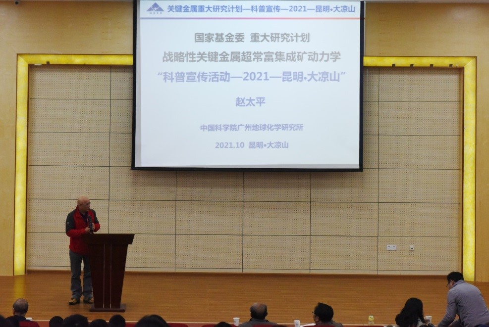 第一場報(bào)告由趙太平研究員講解,題為“國家自然科學(xué)基金委員會(huì)<戰(zhàn)略性關(guān)鍵金屬超常富集成礦動(dòng)力學(xué)>重大研究計(jì)劃及其‘科普宣傳活動(dòng)——2021昆明和大涼山’簡介”。報(bào)告分析了關(guān)鍵金屬礦產(chǎn)資源近年來在國際、國內(nèi)戰(zhàn)略地位的加強(qiáng)。在此基礎(chǔ)上,對我國關(guān)鍵金屬的重大研究計(jì)劃進(jìn)行了介紹,并對該項(xiàng)目本年度的科普活動(dòng)進(jìn)行了介紹和宣傳。