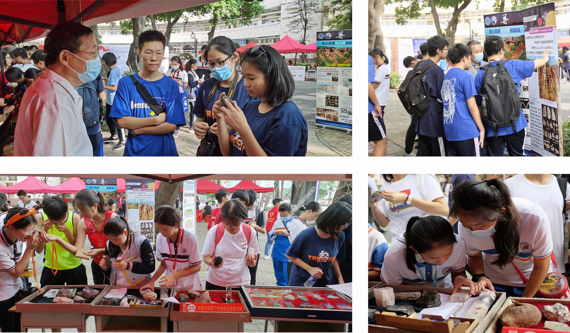 活動(dòng)現(xiàn)場(chǎng),流動(dòng)展館展出了生物演化的化石標(biāo)本、常見鐵、鉛、錳、銅等礦石、油氣烴源巖與油頁(yè)巖以及寶玉石原礦石等50余種地質(zhì)樣品;布置了黑龍江依蘭隕石坑、藍(lán)田上陳古人類遺址、廣州市花崗巖等地球科學(xué)科普知識(shí)展板,向師生介紹地球科學(xué)領(lǐng)域前沿知識(shí)。