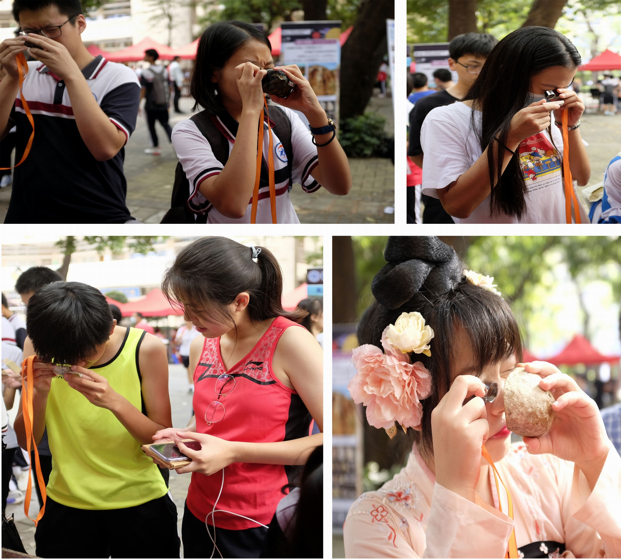 用地質(zhì)放大鏡觀察巖石標(biāo)本成為現(xiàn)場(chǎng)熱點(diǎn),同學(xué)們?cè)诳破罩v解員的指導(dǎo)下,認(rèn)真學(xué)習(xí)如何正確使用放大鏡,并體驗(yàn)觀察標(biāo)本?;顒?dòng)既培養(yǎng)了同學(xué)們的動(dòng)手能力,又學(xué)到了地學(xué)知識(shí),集科學(xué)性、互動(dòng)性與娛樂(lè)性為一體。