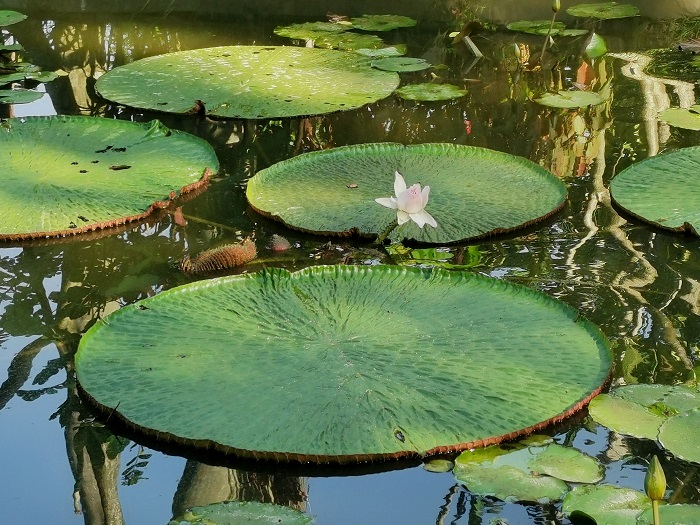 另外,高山植物室與稀樹草坪之間湖面(可不入溫室群景區(qū))上的克魯茲王蓮也還在花期中,大家近期來園能觀賞到王蓮家族中的兩個種同時開花的風(fēng)采。